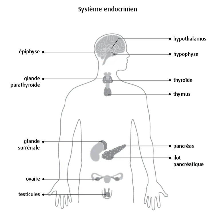 Cette glande hormonale se trouve dans la boite crânienne, avec entre autres l’hypophyse (ou glande pituitaire) et l’épiphyse (ou glande pinéale).